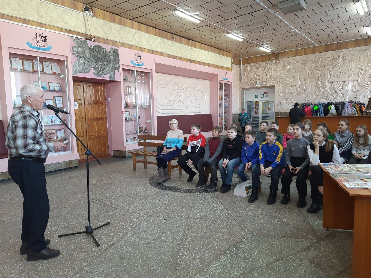 Перед ребятами выступили члены литературной студии города Белогорска: Ирина Михайловна Печинская, прочитавшая авторские стихи, написанные специально для детей, а также Николай Петрович Безматерных, который прочитал для детей стихи А.С. Пушкина.