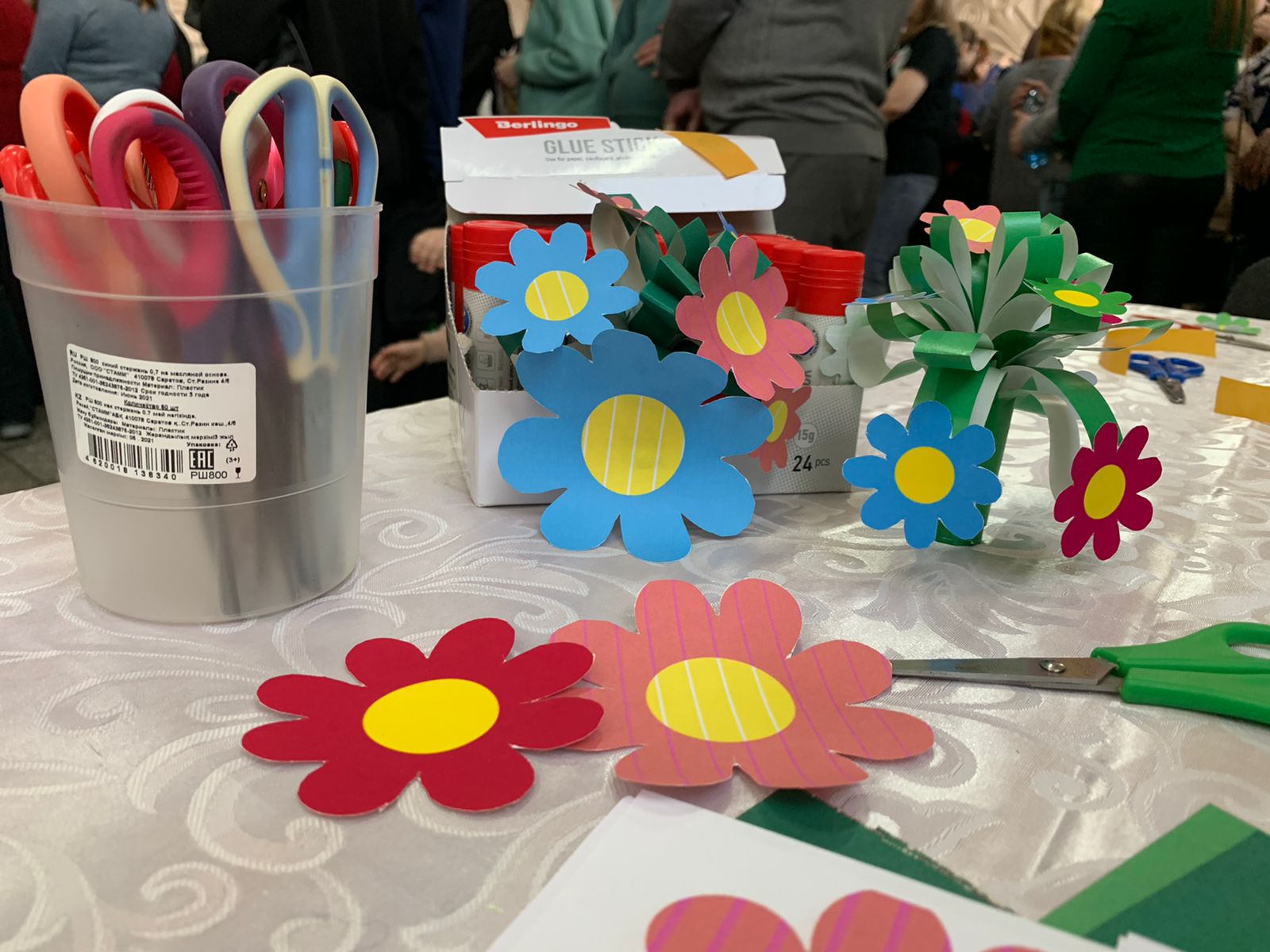 Уже с порога зрители имели возможность окунуться в торжественную обстановку праздника: в фойе была размещена праздничная фотозона, где любой желающий мог сфотографироваться на память. Также заведующая творческой мастерской Дома культуры провела мастер-класс «Украшения своими руками» для гостей праздника.