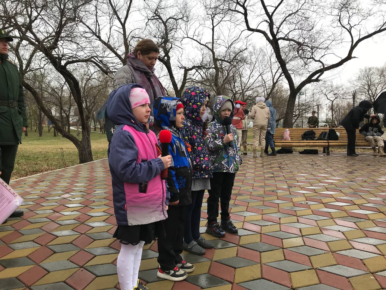 Перед началом митинга в парке прошла радиогазета «Эхо Победы». Для жителей микрорайона звучали песни военных лет. Возле памятника была организована смена караула юнармейцев школы №11 и караульной группы.
