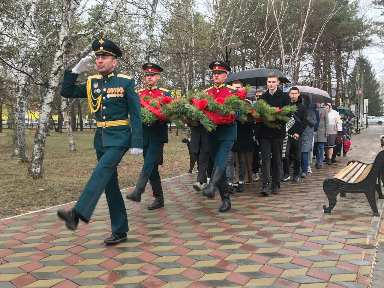 На церемонии звучали музыкальные композиции в исполнении Военного духового оркестра 165 артиллерийской бригады. Память павших почтили минутой молчания. По окончании церемонии салютовая группа произвела залп.