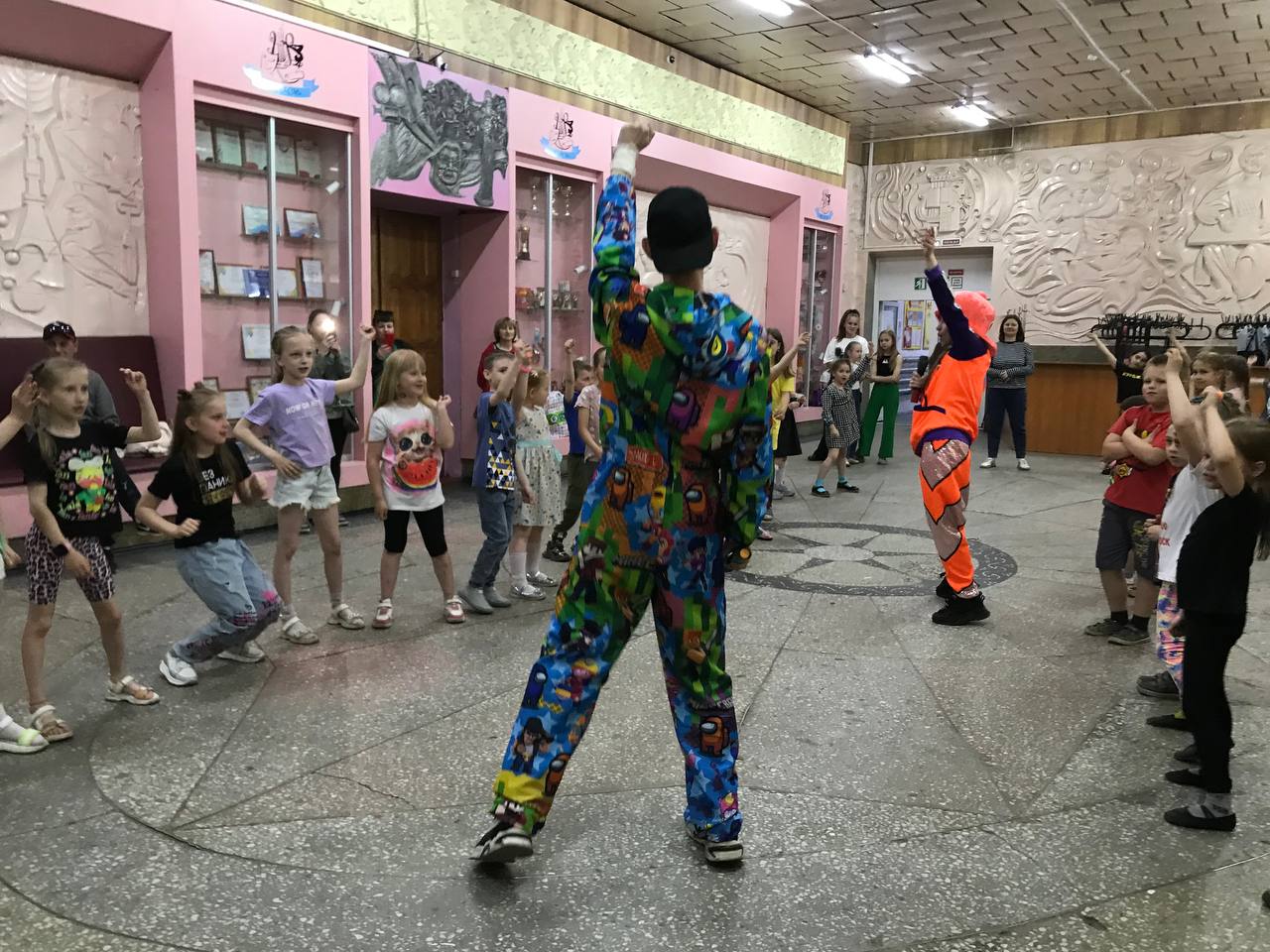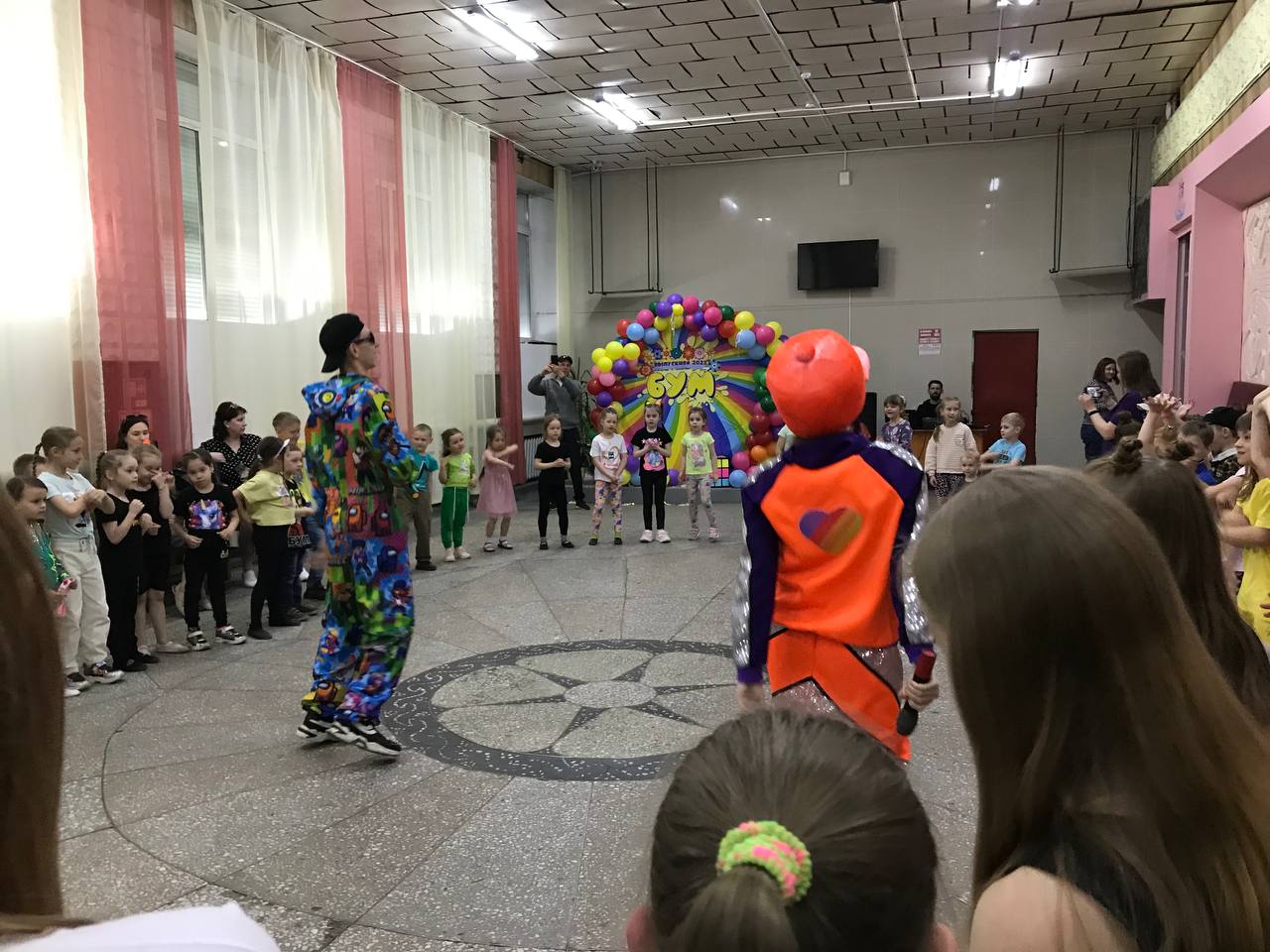 Ребята смогли поиграть в интересные и подвижные игры, вместе с ведущими станцевали зажигательный флешмоб «Чак-чак дэнс», а ещё угадывали песни-перевёртыши и подпевали им все вместе. Ну и, конечно же, ни один ребёнок не остался без танцев. Все кружковцы с удовольствием зажигали под известные хиты своего подрастающего поколения.