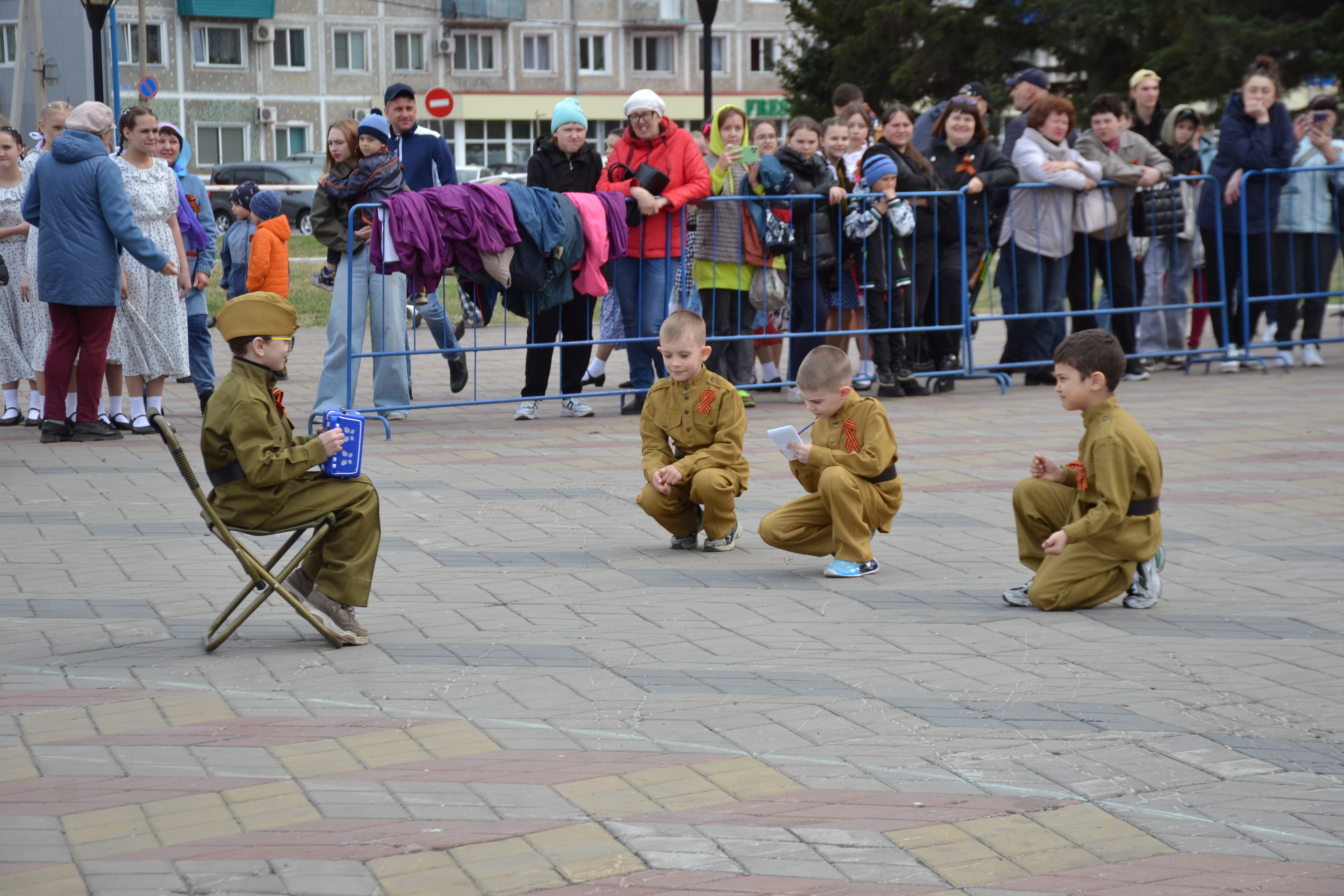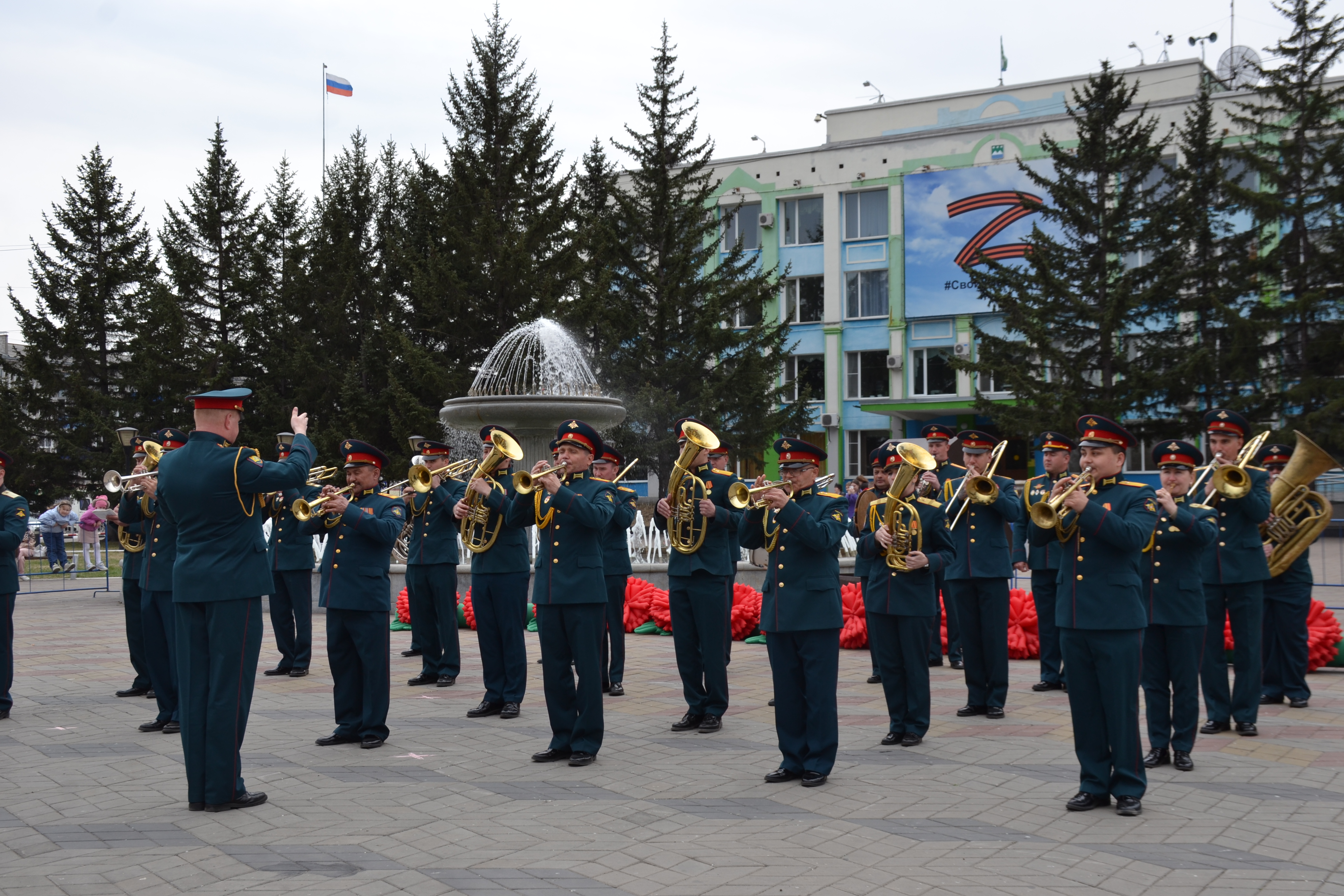 Перед началом акции "Весенний вальс" своими музыкальными военными композициями белогорцев порадовал военный духовой оркестр 165-й артиллерийской бригады. Также зрителям вручили более трёхсот лент-символов в рамках акции "Георгиевская ленточка".