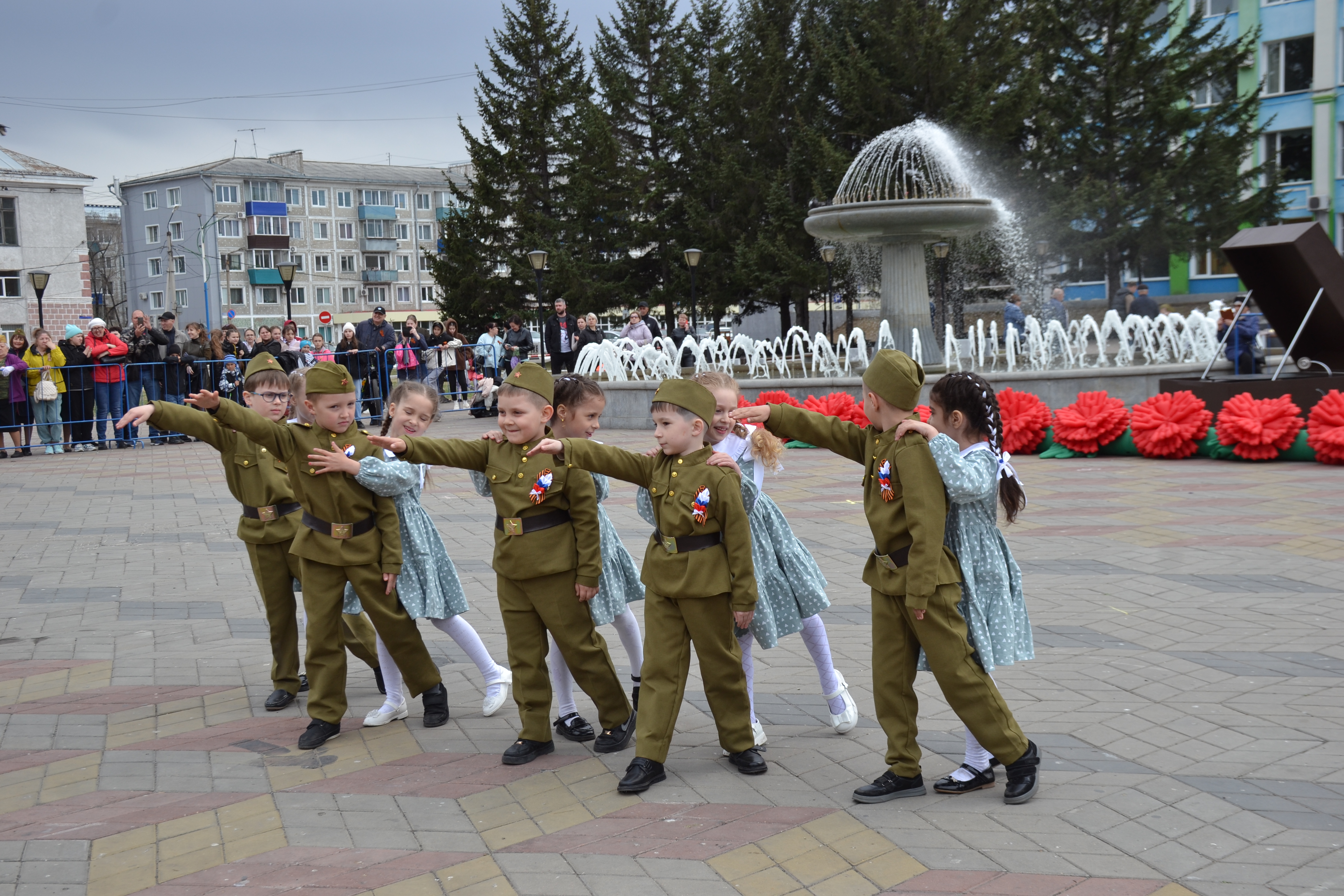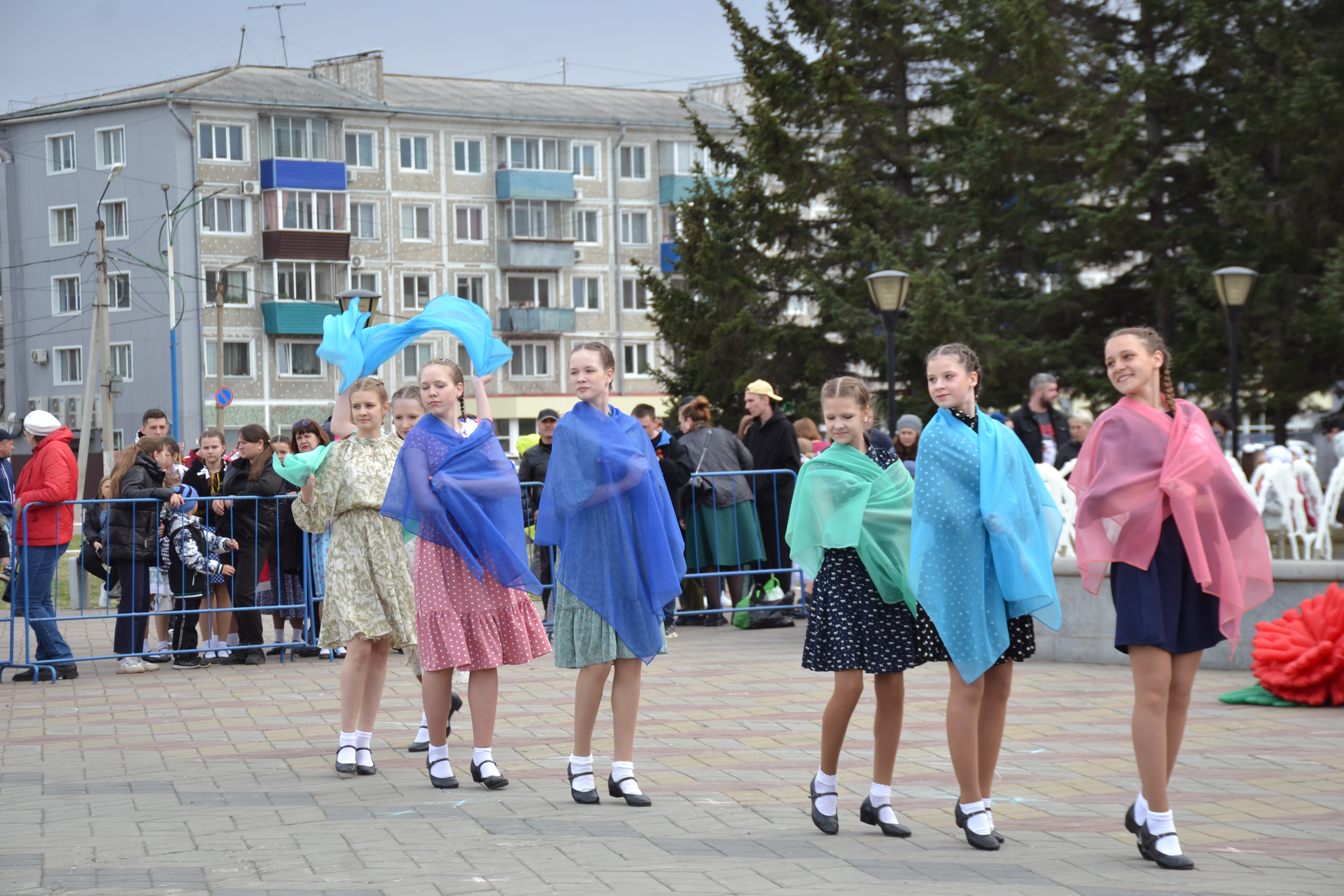 После исполнения своих приготовленных танцев, участники приняли участие в общем флешмобе "Майский вальс".