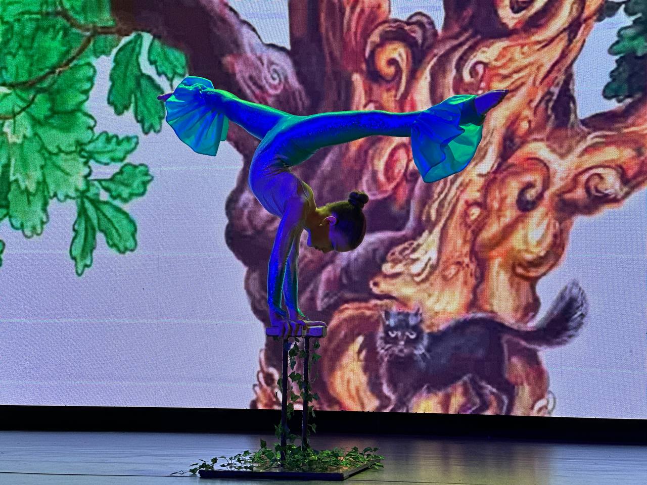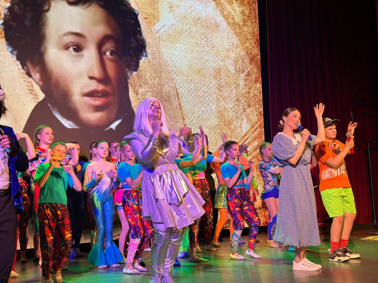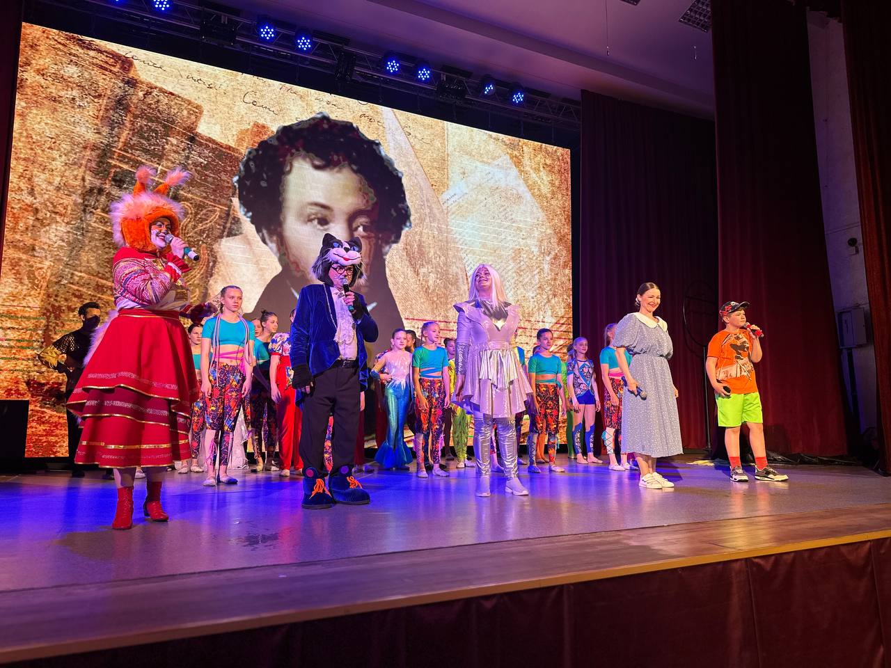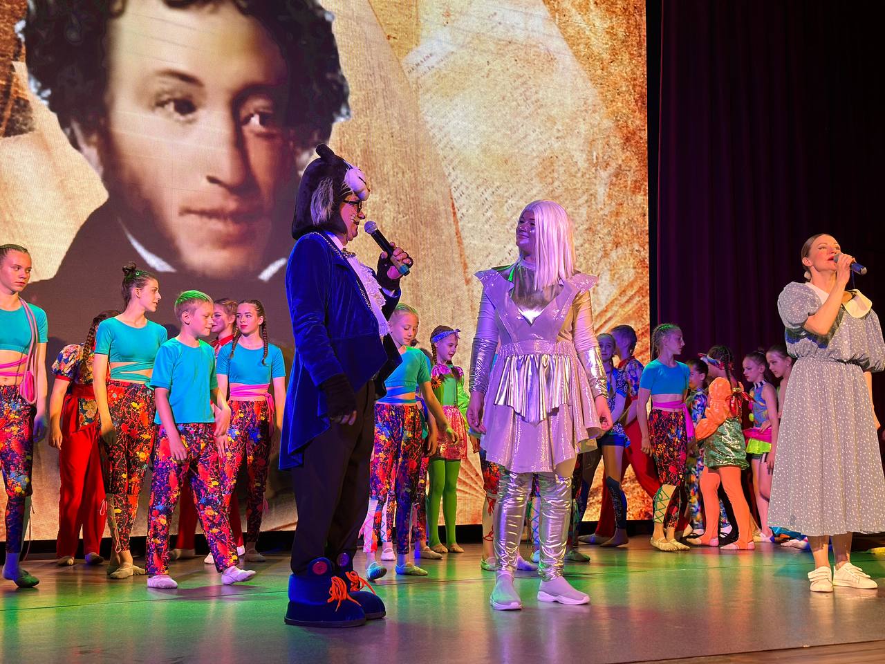 Александр Сергеевич разными голосами рассказывал отрывки из своих произведений. Герои сказок не только оживали на сцене благодаря актерскому мастерству, но и устраивали настоящий цирк! Юные артисты исполняли яркие и захватывающие номера, удивляя и восхищая зрителей. Русалка показала чудеса гибкости, три девицы прыгали сальто, кот ученый не только демонстрировал свою мудрость, но и поразил всех рэп-исполнением, показав, что в мире сказок возможно все.