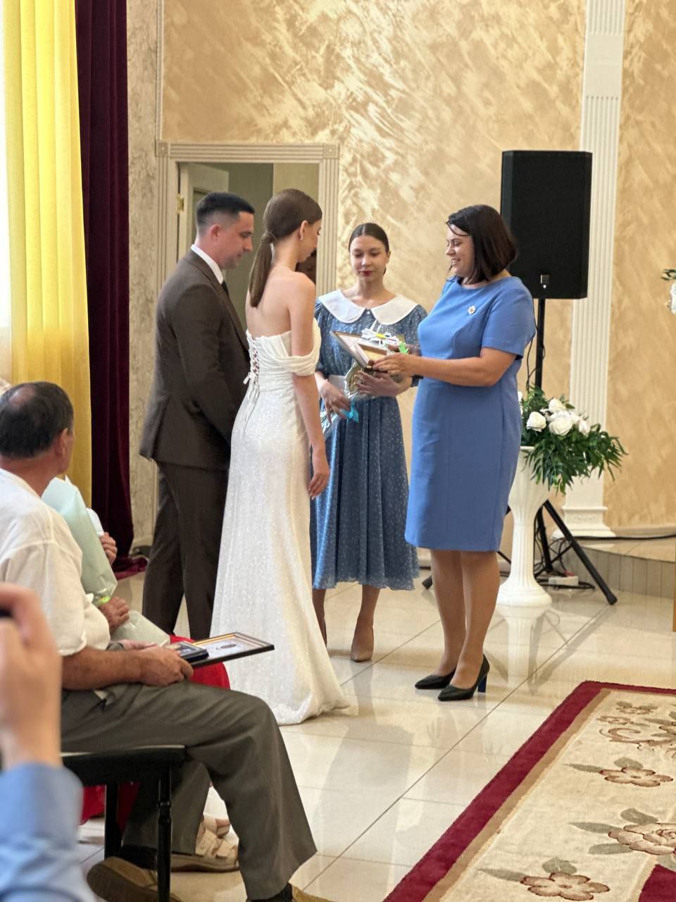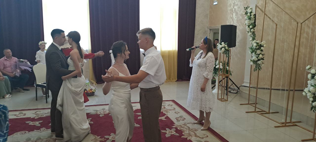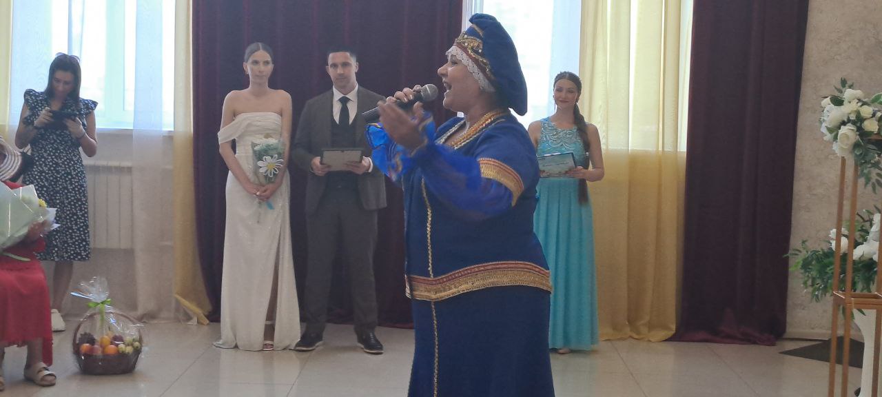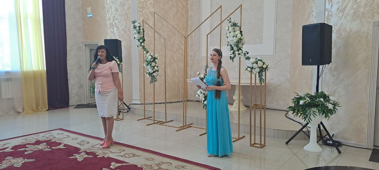 Поздравительные адреса Начальника Управления ЗАГС Амурской области вручила парам молодоженов   Начальник Белогорского отдела ЗАГС Н. Н. Столбовская.
